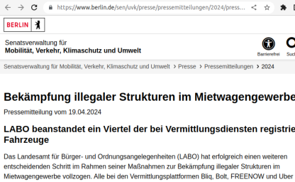 1. Oktober 2025 - Die Taxi- und Mietwagenaufsicht des LAB publiziert keine Statistiken und vesetzt den Illegalen nur Nadelstiche.